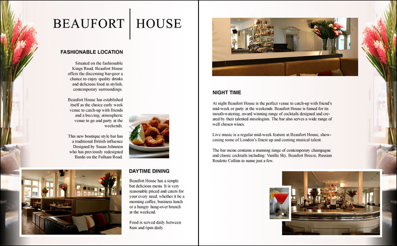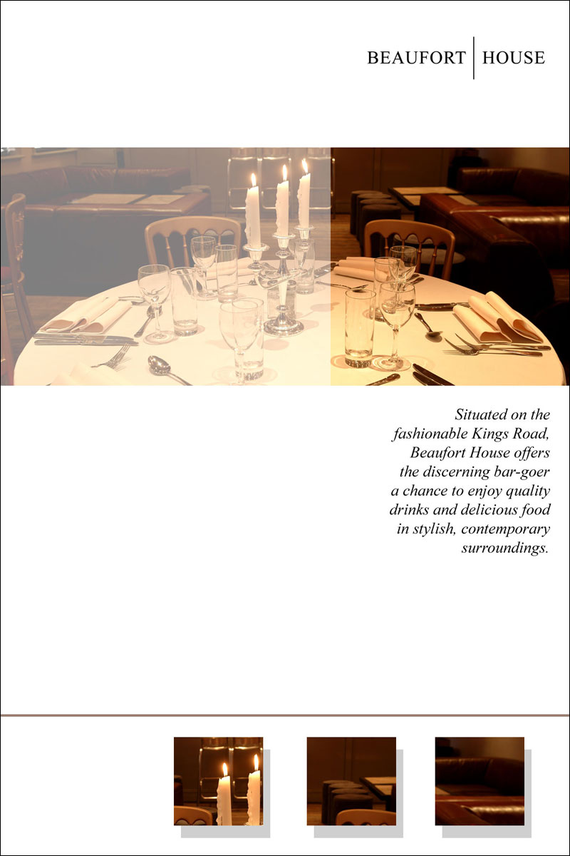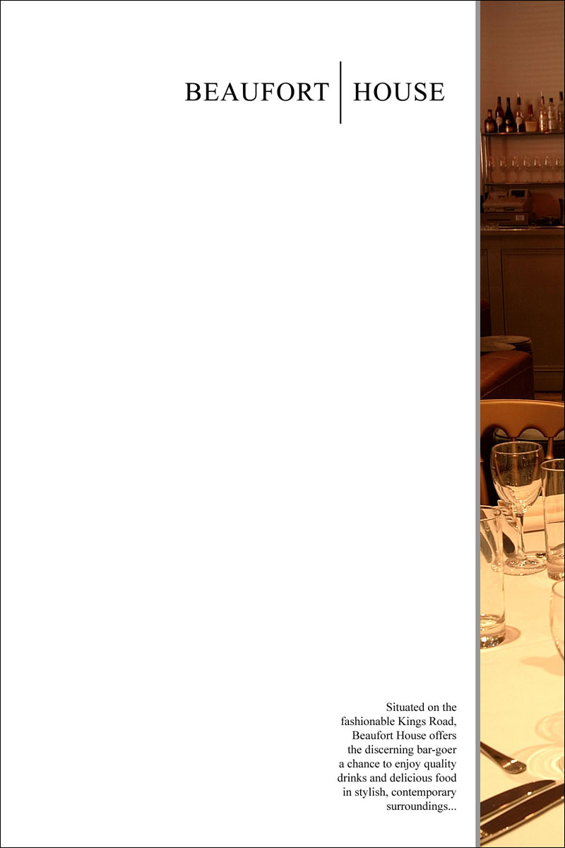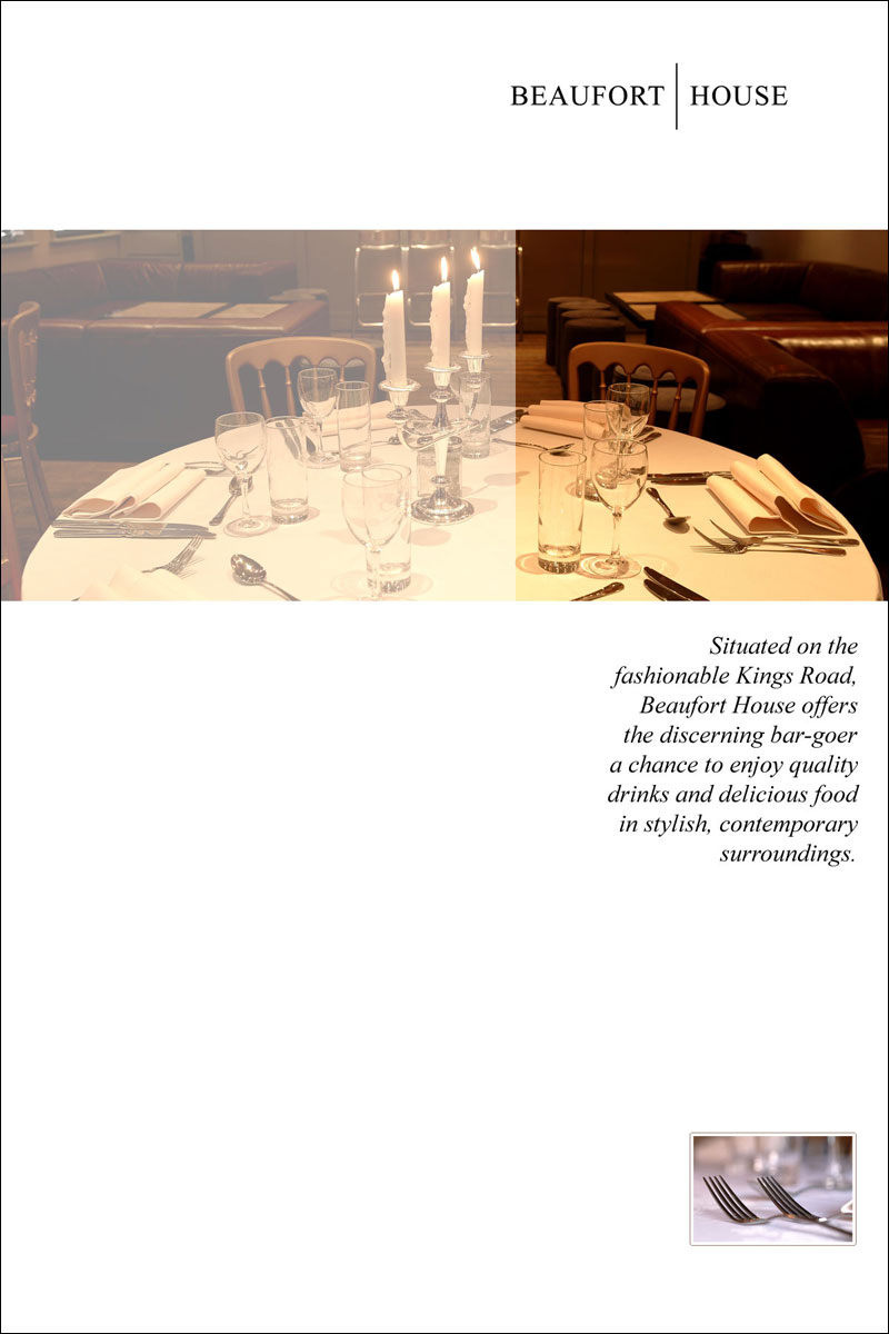 These sample designs were created for brochures, flyers and presentation folders for the Chelsea bar & brasserie. You can click each of the images below to open up a larger version of the design in a new window.